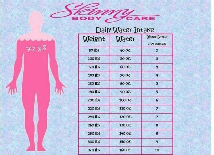 You can determine the right amount of water for you in the table below. It will give you a foundation of how many ounces you should be consuming according to your body weight on a daily basis.