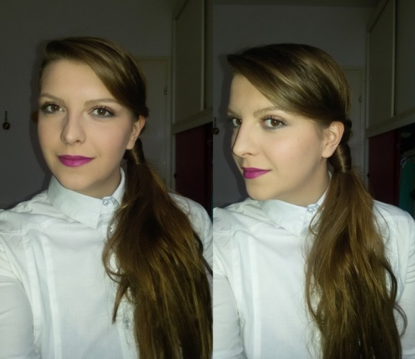 Next in line is the slicked hairstyle with ironed hair, which sounded like a great idea in the evening. However, when I got up in the morning and saw the oily, shaggy (from yesterday’s “curls”) hair, i felt sick in my stomach. I immediately knew that I would be much easier to just wash my hair, than make it for half an hour.