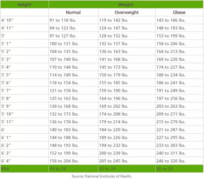 The BMI calculator uses your amount of bone, muscle and fat in your body to determine your ideal weight. It’s a great way to identify your body’s total fat percentage and can tell you if you’re normal, overweight or obese. For example, overweight people have a BMI higher than 24.9, while 30-39 means that you’re obese.