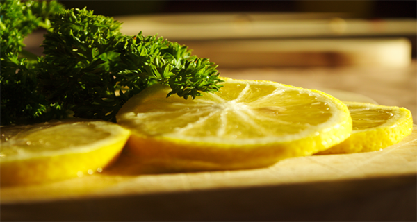 Chop parsley and squeeze lemon juice. Put both ingredients into a glass and pour water.