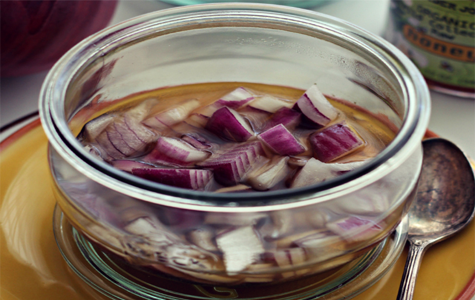 Place the pure maple syrup and preheat it on a medium heat. Then, add the previously sliced onions, cook for a few minutes, and add the water.