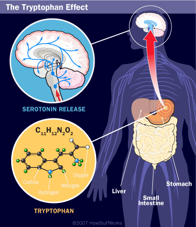When amino acids (tryptophan) are translated into serotonin, we find it in the foods we eat that are high in protein such as eggs, cheese, beans, lentils, chicken, turkey, and red meat.