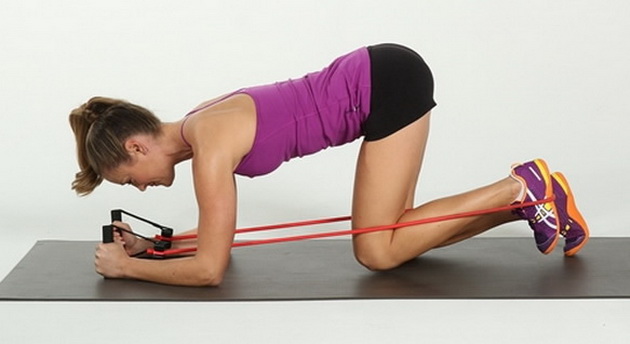 Your knees and elbows on the ground, get into the position shown on the picture. Make sure your back is straight.