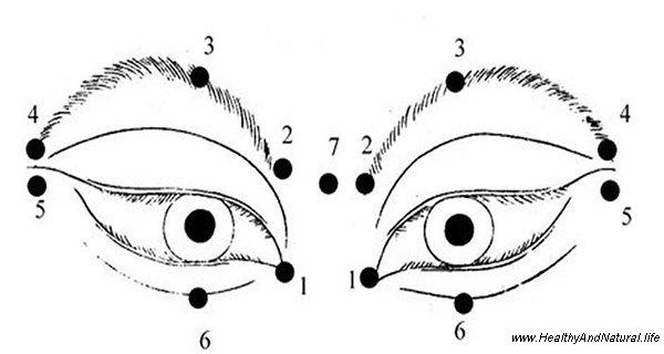 5. Apply some light pressure on your eyeball with the tips of your index and middle finger. Press the eyeball lightly so you don’t feel any pain. Then press these points with your index finger twice.