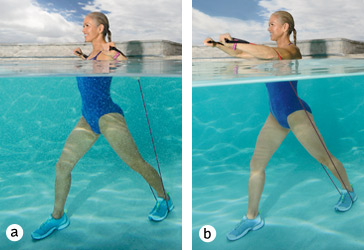 Before each move, tighten your abs to keep your balance in the water. Keep your abs contracted throughout the exercise while breathing normally.