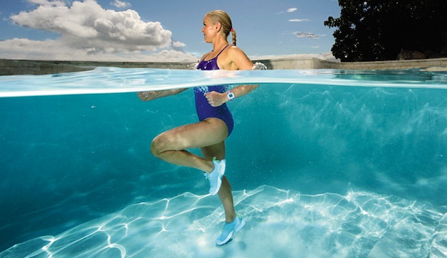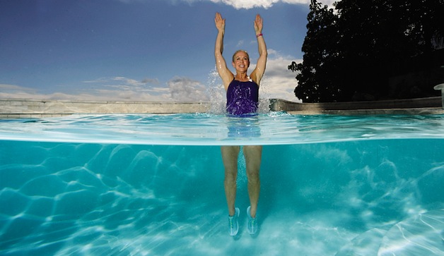 Run from one side of pool to the other keeping your abdominals tight. Swing your arms powerfully through the water and lift your knees high toward your chest. Continue for 1 minute to complete 1 set.